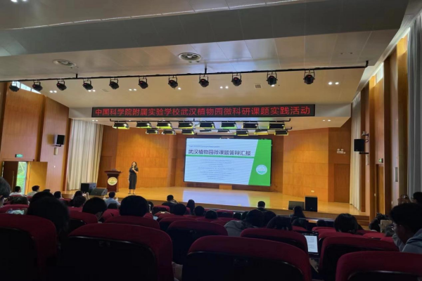 活动中学生分组参与了生态、水生植物、入侵植物等方面多个小微科研课题的探究。在导师的带领下,学生们不仅实地探访了武汉植物园的科研实验室等场所,了解植物的生长过程、生态环境等方面的知识,在实验环节,也亲手操作了实验设备,进行了实验操作和数据分析。他们通过采样、实验、分析、汇报等环节,亲身参与了科研工作的全过程,感受到了科研工作的严谨。课题汇报会上,来自果树分子育种学科组韩月彭研究员、全球变化生态学学科组刘峰研究员分别对学生们的汇报作出了精彩点评。