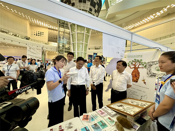 启动式结束后,出席活动的领导参观主场科普展台。在武汉植物园的展台前,他们了解了武汉植物园对非科技合作的情况,并对武汉植物园长期以来利用特色资源开展科普工作表示肯定。