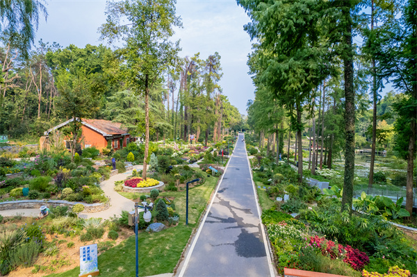新打造的中央花境大道在秋季显现迷人风姿,四段特色花境姿态各异。诗经楚辞花境以《诗经》《楚辞》为灵感,用芦苇、菘蓝、苎麻、茜草等特色植物,重现沤麻、采蓝、获稻、蒹葭等古典场景。色彩艺术花境以色彩为语言,通过蓝白紫粉红的渐变,构建出台地花园的绚丽图景。国风花境将中国古典园林的精髓融入其中,亭台楼阁、小桥流水与特色植物相映成趣,中国传统观赏植物菊、蔷薇、荚蒾等汇聚一堂。形态艺术花境以对称布局、造型灌木与观花观叶植物的巧妙结合,展现中西合璧的园林艺术。