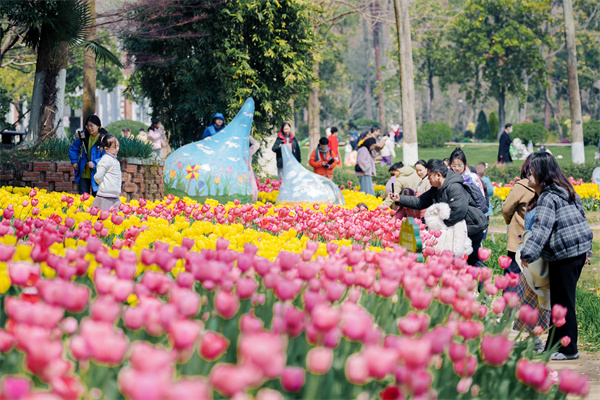 春季花展期间,武汉植物园特别策划了系列互动体验活动,每个周末都有精彩上演,邀请游客来“过春天”。园区推出“给春天添色彩”活动,游客可用彩色纱幔装饰树木枝干,共同完成春日艺术共创。游客还可参与春日集章打卡活动,在郁金香特色展区收集专属春日花卉印章。武汉植物园免费为游客提供汉服和创意服装,邀请游客一起走花路和打卡拍照。清明假期将推出“岁时手作”剪纸活动,以郁金香纹样传递非遗技艺的简约之美。更有弦乐四重奏表演,将悠扬旋律注入花海。