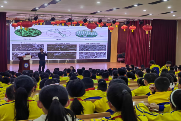 作为生态毒理学专家和资深科普工作者,李勃博士从真菌在自然界中的独特地位切入,向师生们揭示了这一生命类群的非凡价值。他介绍,真菌是地球上与动物、植物并列的第三大生命类群,而蘑菇作为其子实体,形态多样、功能丰富。世界上已发现的上万种真菌中,许多种类不仅为人类提供美味食材,更在医药、材料科学等领域展现出巨大潜力。例如,科学家正尝试将真菌菌丝体开发为环保材料,用于制造可降解包装、建筑板材甚至电子元件,这一前沿研究方向令在场师生耳目一新,深刻体会到“小蘑菇”背后蕴藏的大科学。