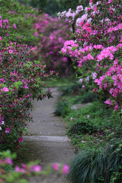 九色牡丹上演春花大秀 4米杜鹃王倾泻“紫霞瀑布”