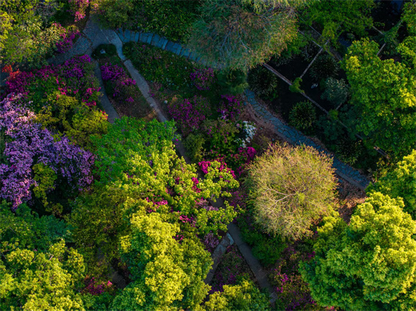 杜鹃园与阴生植物区交界处,繁花锦绣、流水潺潺、石桥嶙峋,为游客带来身处江南般的惬意和流觞曲水意境的体验。花儿自由奔放,鸟儿畅快歌唱,在这片宛如仙境的赏花区,看繁花似锦,乐在其中。