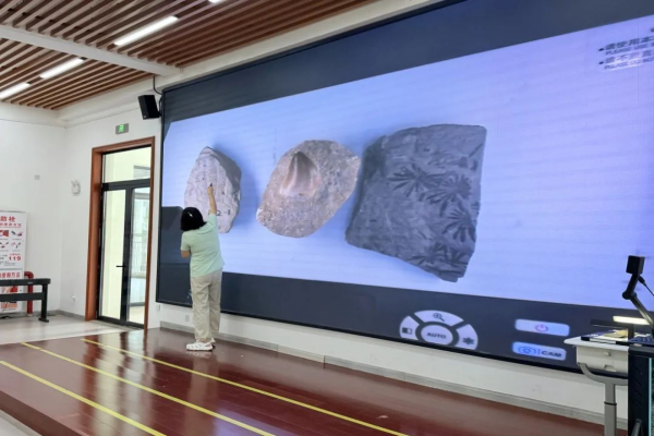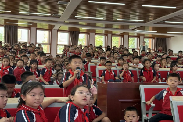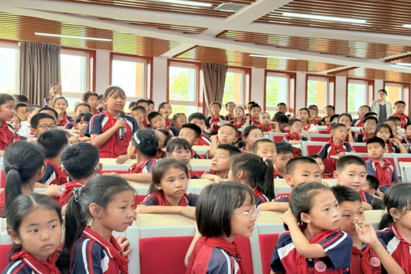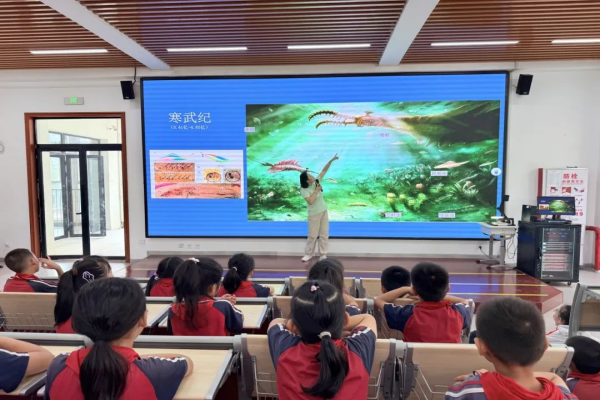 白琳以个人科研经历为切入点,用“考古学家挖的是老祖宗的宝贝,古生物学家找的是地球的童年日记”的生动比喻,揭开古生物学的神秘面纱。当讲到化石形成需要“天时地利虫和”的苛刻条件时,孩子们盯着投影中缅甸琥珀里的恐龙羽毛标本,发出阵阵惊叹。“现在的科学家不用趴在地上敲石头啦!”白琳展示的高精度CT扫描技术让化石研究“看得见摸得着”,3D打印的恐龙胚胎模型在孩子们手中传递,数字显微镜下的微体化石仿佛打开新世界的窗口。互动环节中,“为什么有的化石在山顶?”、“恐龙蛋为什么是椭圆的?”等童趣提问层出不穷,白琳以“科学家的第一个身份是好奇宝宝”鼓励孩子们保持质疑精神,现场回答着孩子们稚嫩却闪光的科学问题。 讲座让化石里的科学精神、实验室中的创新思维,真正融入孩子们的成长轨迹。当二年级(13)班的王薪佑在作文里写下“我发现化石会说话,说的是坚持和好奇”时,这场跨越时空的科普对话,正在孕育新的科学未来。