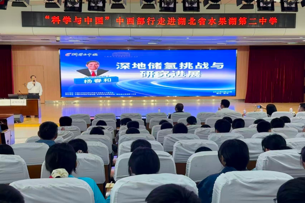 科学的种子播撒校园,创新的火花点亮未来。9月23日上午“科学与中国”中西部行活动走进湖北省水果湖第二中学,为莘莘学子带来了一场关于未来能源的智慧盛宴。中国工程院院士杨春和以“深地储氢挑战与研究进展”为主题,为同学们进行了一场内容丰富、深入浅出的启蒙科普,极大地激发了同学们对前沿科学的好奇心与探索欲。