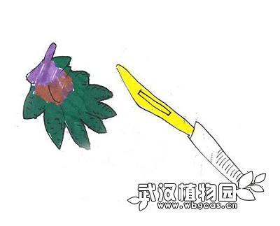 对刀具进行消毒。将刀片轻轻的伸入到所选定的位置,下刀前要再次检查位置是否合适和满意,感觉位置准确后要果断下刀但力度要掌握好,避免由于过于用力使刀刃伤及到植物的主根。