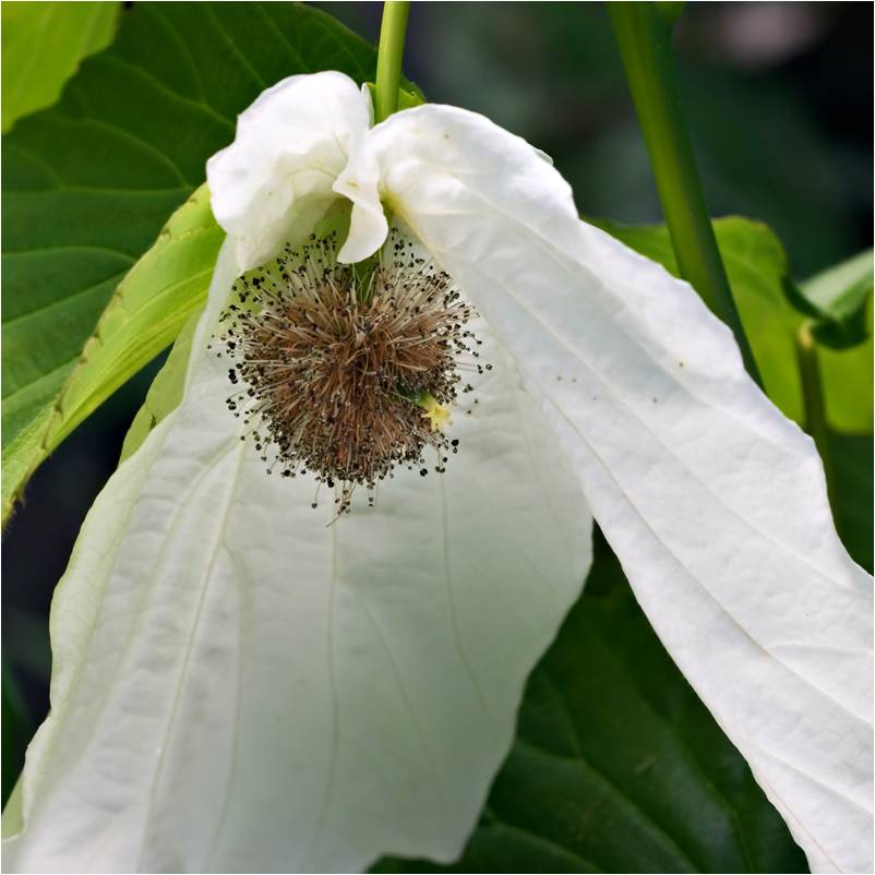 珙桐,初夏开花,花形奇特,苞叶呈乳白色,成对地长在花序的基部,恰似白鸽的双翼。盛花时,远远望去,真像一只只白鸽停歇在树梢,别是一番风味,所以它又名鸽子树,属落叶乔木,是世界上濒于灭绝的、非常珍贵的、我国独有的单型属植物。由于它具有极高的观赏价值以及非常罕见等特点,被我国列为国家一级重点保护树种。