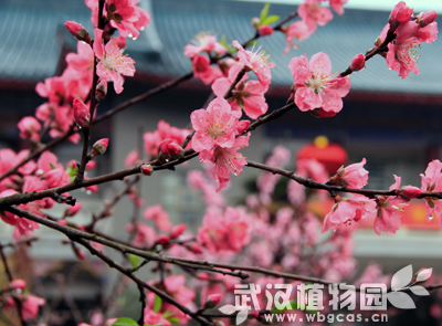 走进武汉植物园大门,可以看到满眼的桃花。桃花树态优美,树干扶疏,花朵娇艳美丽,为早春重要观花树种。武汉植物园内正在盛放的是采用技术手段提前催开的桃花。