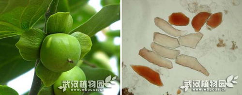 这个让我们感觉到涩味的物质叫做单宁。它是植物自身的一种代谢产物,是一种酚类物质,普遍存在许多植物之中。柿是能够产生单宁的典型植物,柿果中有两种单宁:不溶性单宁和可溶性单宁。它们就好比两个兄弟,不溶性单宁比较懂事儿,在口腔中不会产生涩味;而可溶性单宁十分调皮,在人体的唾液中可以溶解,它和口水中的蛋白质产生聚合,形成一种收敛感,也就是我们感觉到的涩。未成熟的柿果中含有大量的可溶性单宁,此时的柿果非常涩不能食用。经过自然成熟或人工脱涩后,柿果中可溶性单宁转化成不溶性单宁或是生成沉淀等其他物质,人们便感觉不到涩味,此时可以食用。