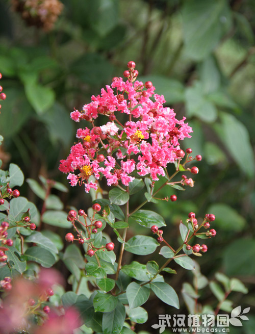 如果用手轻轻抚摸一下紫薇光光的树干,它顶端的枝梢马上会轻轻摇动起来。枝摇叶动,浑身颤抖,就像人们被搔了胳肢窝儿一般,看来紫薇果然很“怕痒痒”呢,因此它被叫做“痒痒树”。