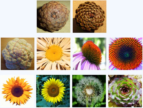 自然界中各种各样的裴波那契螺旋,图片来源于网络