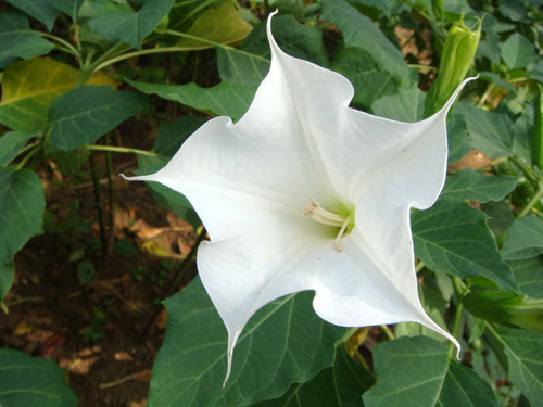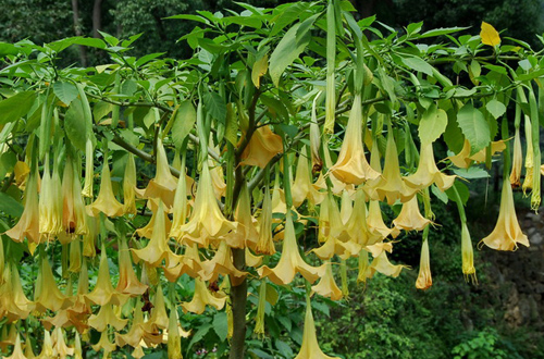 曼陀罗是来自茄科的一种草本植物,又叫洋金花、野麻子、醉心花、闹羊花、凤茄花等,在我国大江南北都比较常见。夏秋季开花、花呈白色、紫色或淡黄色,漏斗型,边缘五裂。全株有毒,以果实和种子毒性最大,有强烈的麻醉效果,因为其中含有的天仙子碱是副交感神经抑制剂的一种,它可使人产生幻觉,昏迷麻痹,肌肉松弛,汗腺分泌受到抑制。武侠小说中神秘的“蒙汗药”据记载正是由曼陀罗制成。而为关公刮骨疗毒的华佗大夫,他给人动手术用的“麻沸散”,据唐代孙思邈《华佗神方》的记载,主料之一也是这曼陀罗。现今曼陀罗虽可入药,但因为毒性大很少使用。