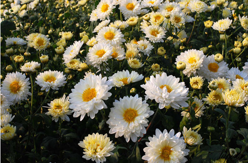 南朝梁简文帝《采菊篇》中有“相唤堤筐采菊珠,朝起露湿沾罗襦”,描述当时妇女勤劳采摘的情景。可见人们已经开始将具有药用或食用价值的菊花作商品化的采集了。