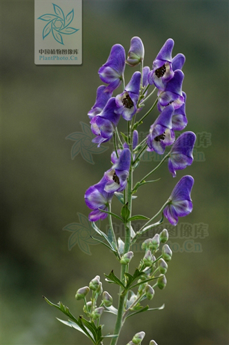 在夏秋季节,你能轻易的在山坡、灌丛及沟谷湿地发现它的身影,充足的阳光、潮湿温和的气候加之肥沃的土壤,是它安家定居的首选。绛紫色的小花披着一层纤细的柔毛,簇拥着悬挂在主干的顶端。花萼中的一片如一顶圆筒状的帽子,上面的两个大花瓣如柄一般位于帽子的下面,整个看去就如一个战士的头盔,神气十足!它的顶端还有一枚针状的结构,可别小觑了它,它可是花蜜的所在地,有了它的吸引,专属“红娘”——大黄蜂才开始辛勤的牵线搭桥呢!鲜花可少不了绿叶的衬托,掌状的绿叶在茎干上交互盘旋,映着顶端绛紫的小花儿,如同一列手持宝剑,器宇轩昂带着头盔的战士一般!当你沿着茎干轻轻拨开根部的泥土,这时可要小心啦,三两相连略带褐色肉肉的小根,被中药界称为“乌头”,这就是它“制毒”之处,可千万不能用手直接触摸哦!剧毒!剧毒!剧毒!(重要的事情说三遍!)