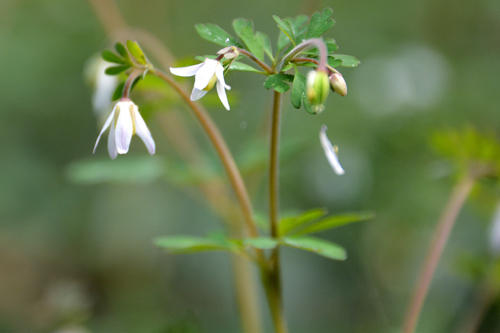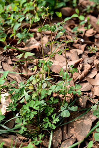 说了这么多,是不是已经了解了这种神奇的“毒花”啦,可惜正值春季,难觅得它的踪迹。不过也不要沮丧,就在你的身边还有个它的远房亲戚呢!它同为毛茛科,号称紫背白铃小乌头——天葵,它的毒性就小很多了,扇状菱形的小叶,背面略带紫色,匙型的花瓣拼凑出白铃般的小花,春风吹动,白铃摇拽,仿佛在演奏这春的赞歌,乌头还在沉睡,等待着夏秋的钟声响起,此刻,不妨先与这紫背的白铃来场春的邂逅吧!