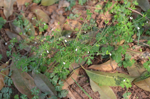 天葵为毛茛科天葵属植物,天葵的花白色,花梗纤细,成熟的果实如老鼠屎,所以俗名千年老鼠屎。天葵的块根可以入药,有清热解毒、消肿止痛之功效。