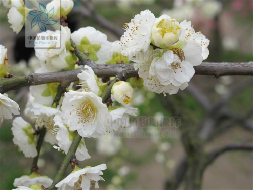 4、白碧垂枝型:花单瓣或复瓣,白色,花萼纯绿色。如:‘单碧垂枝’、‘双碧垂枝’等。