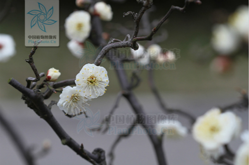 2、残雪垂枝型:花单瓣或复瓣,碟型,花瓣白色,花萼绛紫色。如‘残雪’等。
