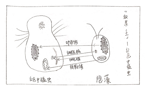 隐藻:那个大坏蛋,哼,还不是借花献佛,拿着我的叶绿体来讨好你嘛,坏虫一只!(生气脸)