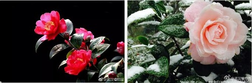 其中不乏山茶中的珍品———著名的金茶花。山茶花花色丰富,红的有‘照殿红’、‘一捻红’、‘千叶红’;粉的有‘正宫粉’、‘赛宫粉’;还有红白相间的‘玛瑙’;更有那一树开出三色的“奇”山茶,花开时一朵花上竟有红、白、粉红三种颜色。