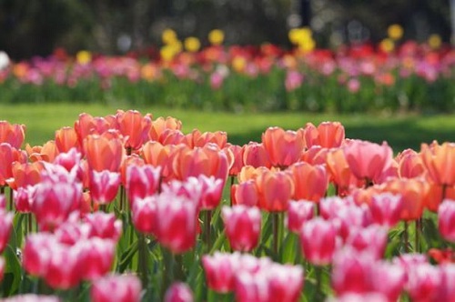 利用不同品种的郁金香混种,或者是郁金香与其他球根花卉混种。这种混种形式已趋近流行,它的好处是可以延长整个观赏期,无论是早春还是初夏都可以看到球根花卉美丽的身影。