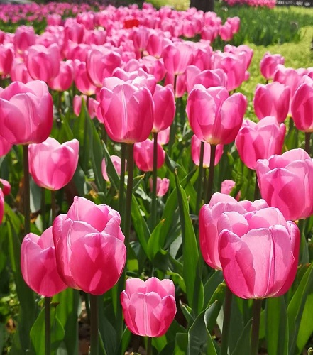平坦的地势、开阔的视野,数不尽的郁金香带来的震撼。选用的品种最好是同花期,颜色鲜亮,但品种不易过多。
