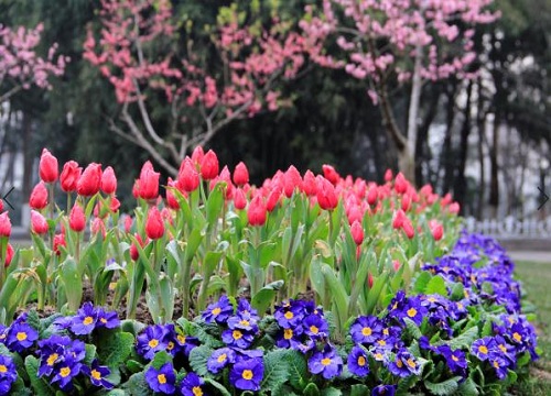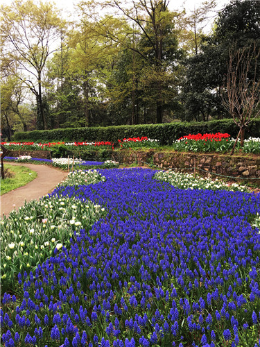 郁金香、洋水仙、风信子、葡萄风信子等各类球根花卉争相开放,构成一幅色彩繁茂的画卷。