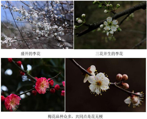 4、是梅花、李花、还是樱花?看花梗和花色