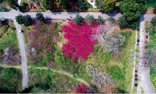 蔷薇科花卉颜值颇高,个个都是营造园林景观的好手。在中国科学院武汉植物园中,处处可见蔷薇科花卉营造的园林景观。