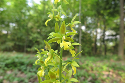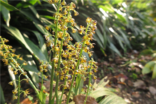 大黄花虾脊兰Calanthe sieboldii Decne.花葶长而直,花大,鲜黄色,明艳动人。大黄花虾脊兰野生种群数量非常稀少,被称作“植物界的金丝猴”。