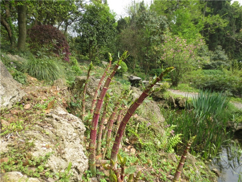 虎杖Reynoutria japonica Houtt.发芽开始生长后,就如雨后春笋般生长迅速,肥嫩的茎秆上密集着生紫色的斑点。