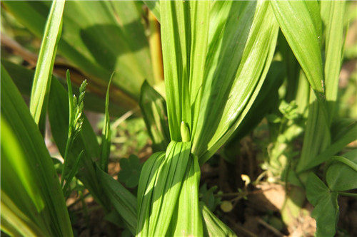 扒开黄花白及Bletilla ochracea Schltr.顶端一侧的叶片,看到绿色的花蕾,让人期盼着花的盛开。