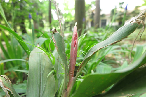 山姜Alpinia japonica (Thunb.) Miq.花序的总苞片被撑开,红色的花骨朵已可窥见。