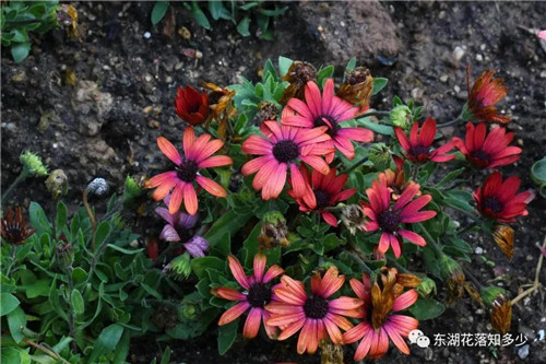 蓝目菊Osteospermum ecklonis (DC.) Norl.,又名非洲万寿菊、非洲雏菊、大花蓝目菊,花色极多,花大,植株低矮,很适合做观赏地被。