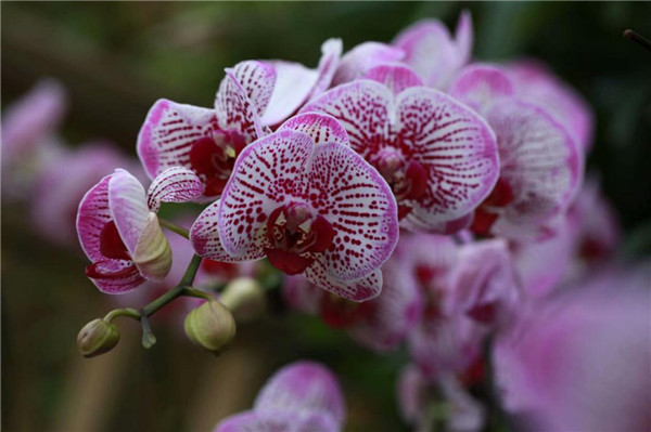 因花瓣张开时形似蝴蝶而得名,花市琳琅满目的蝴蝶兰品种总使人看得眼花缭乱,培育的品种很多,但蝴蝶兰200年前才被植物猎人在幽暗潮湿的亚热带雨林中发现。虽然蝴蝶兰的花型千变万化,但其标志性的合蕊柱和唇瓣始终都在。盛花时,从叶腋中抽出的长长的花梗上,像极了落满缤纷蝴蝶的花丛。蝴蝶兰色彩丰富却又不失简约,既张扬又不失内敛,因此广受大众喜爱。