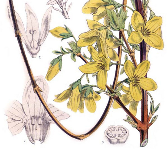 连翘花的细节(图片来源:naturalmedicinefacts.info)