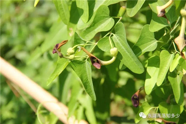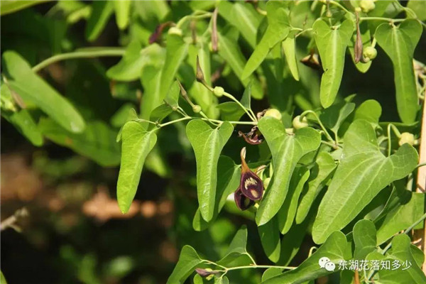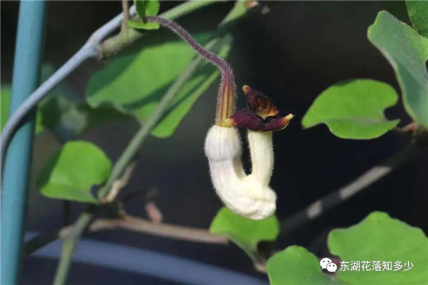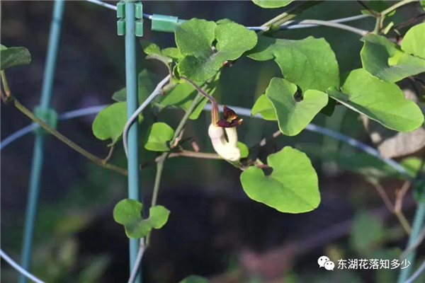 这就是分布最广,使用最多的马兜铃了,马兜铃属植物最常见的代表,花朵像一个小喇叭。