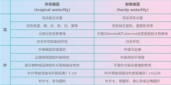 睡莲原种60余种,栽培品种超过1000个。从植物分类学上而言,睡莲属共分为5个亚属:广热带亚属(Brachyceras)、古热带亚属(Lotos)、新热带亚属(Hydrocallis)、澳洲亚属(Anecphya)和广温带亚属(Nymphaea)。按照其生态类型可以分为热带睡莲(tropical waterlily)和耐寒睡莲(hardy waterlily)。