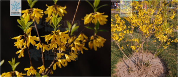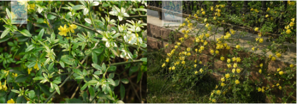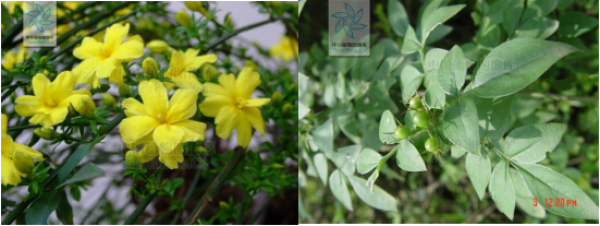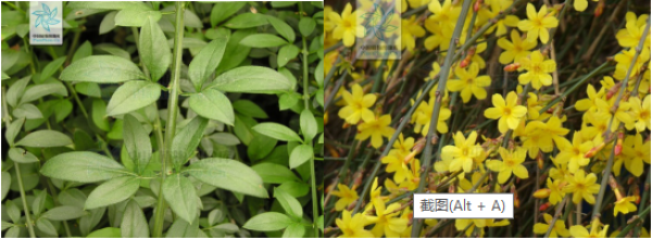 图1:迎春花的叶 图2:迎春花的开花的枝条(图片:中国植物图像库)