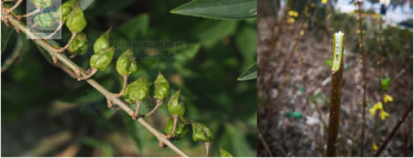 图1:金钟花的果(图片:中国植物图像库) 图2:金钟花的枝切面(摄影:曹承娥)
