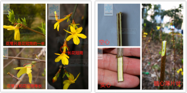 图1:迎春花的单朵花(摄影:曹承娥)图2:迎春花枝条切面(图片:中国植物图像库)