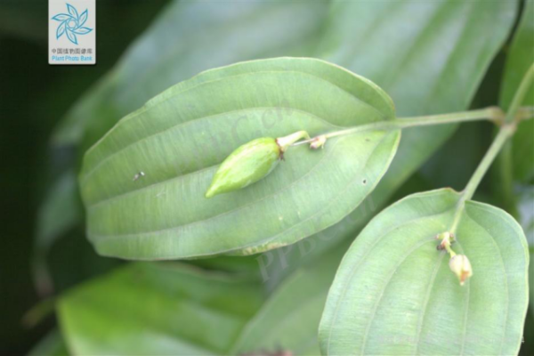 叶上开花结果的植物,除了青荚叶外,百部也具有这样独特的特征。百部(Stemona japonica (Bl.) Miq)百部科百部属的植物。百部属有30多种植物,主要分布在亚洲、大洋洲和北美洲的亚热带地区。我国有大约5种。其纤细的花序柄贴生于叶片中脉上,花单生或数朵排成聚伞状花序;花被片淡绿色,披针形,开放后反卷。蒴果卵圆形,成熟后呈赤褐色,有2爿开裂,通常有2颗种子。虽然都是叶上开花结果,但百部看上去比较“纤弱”,观赏价值稍稍弱于青荚叶。