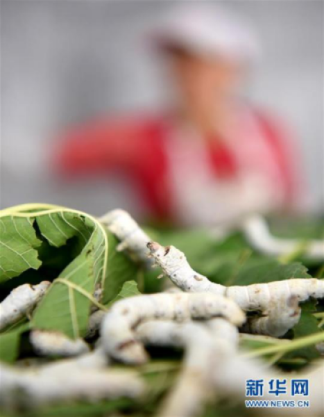 图:正在吃桑叶的蚕(图片来源新华网)