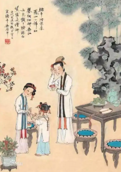 古代女子在庭院中设香烛瓜果乞巧图(图片来源:百度)
