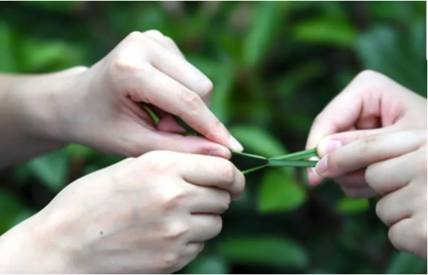 放学时,孩子们喜欢三五成群在路边寻找具有一定韧性的草,摘下来,让草相互交叉成"十"字状并各自用劲拉扯,以草不断者为胜。这种以人的拉力和草的受拉力的强弱来决定输赢的游戏叫做“斗草”。