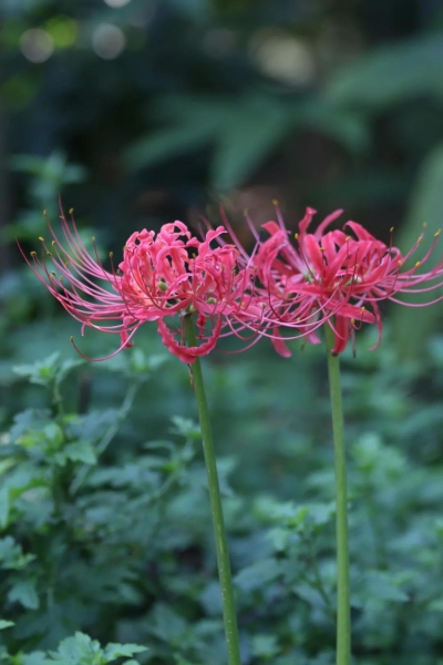 我国的石蒜属资源基本处于野生状态,其中垂直分布幅度最大和分布最高的种类是石蒜,其次是忽地笑,分布最北的种类是鹿葱。石蒜属植物都和石蒜一样,是显花植物中少见的花叶永不相见的植物,被欧美国家的园艺爱好者称为“magic lily”。
