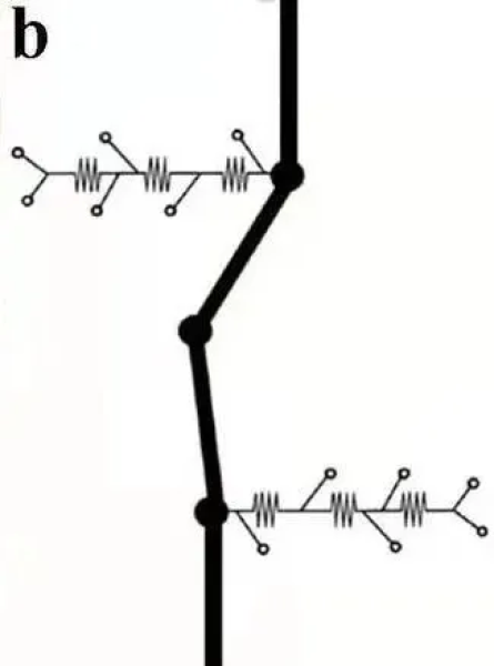 此外,科学家们还观察到,爬山虎吸盘会沿着卷须主轴进行交替排列,这不仅遵循建筑学中的对称—非对称规则,而且和表面物理化学中的稳定吸附原理一致。