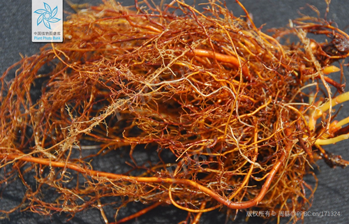 茜草(Rubia cordifolia L.)是茜草科茜草属的草质攀援藤木,我国大部分地区均适宜种植。其根状茎和节上的须根均为红色,含有茜素,能染红色。