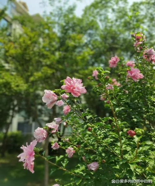 木槿作为我国传统园林花卉之一,早在3000多年前的《诗经》中就已经出现:“有女同车,颜如舜华”“有女同行,颜如舜英”,这里的“舜”指的就是木槿,借用木槿赞美女子容貌的美丽和品德的美好。春秋时期《礼记·月令》也有“仲夏之月,木槿荣”的记载,并以木槿作为仲夏的代表花卉。