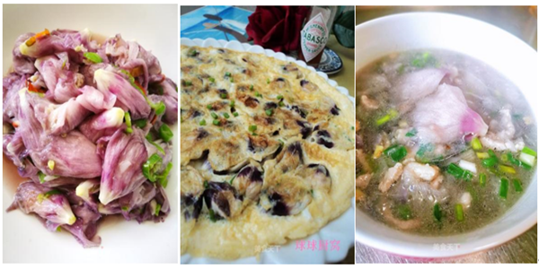 木槿不仅是一种美丽的园林花木,也是一道美味的养生蔬菜。其花与嫩叶可鲜食也可干食,依据个人口味制作不同菜肴,如木槿花烧鲈鱼、炒鸡蛋、炖豆腐汤等,还有用木槿花和稀面加葱花油煎、制成松脆可口“面花”的小食做法,木槿还可以代茶饮,有退热明目、清热解暑等功效。